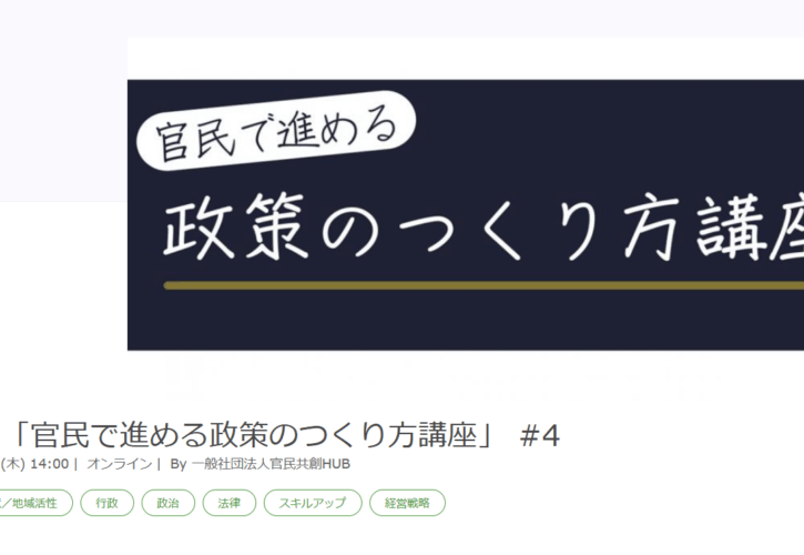 11月27日(木) 14時 無料オンラインセミナー「官民で進める政策のつくり方講座#4」に横山が登壇します。